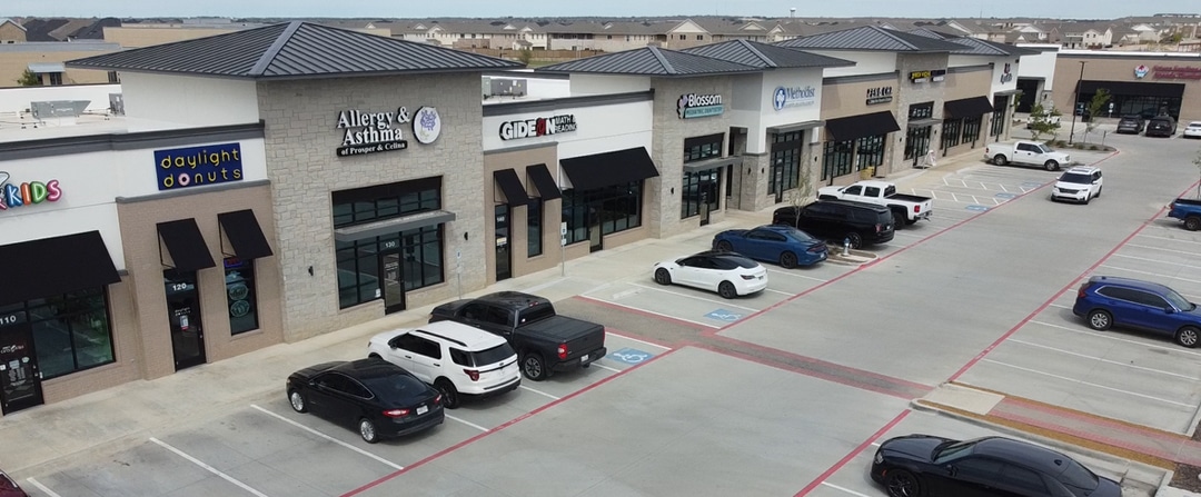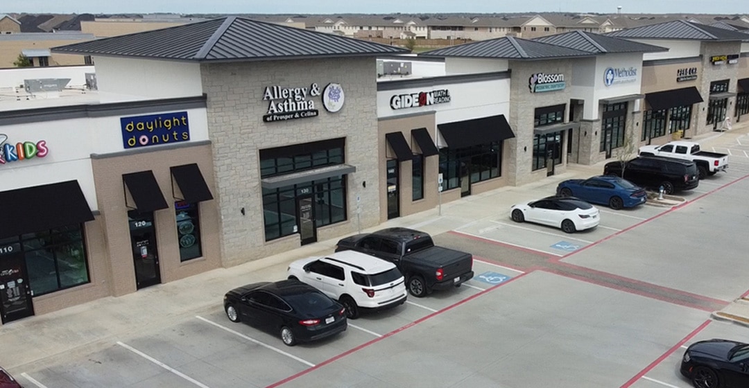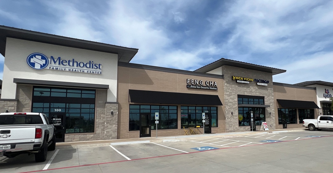 The development includes three Class A buildings totaling more than 24,000 square feet. Tenants represent a diverse blend of retail and medical services, including Methodist Health, Which Wich, Paciugo, Swig, a pediatric dentist, allergist, swim school, veterinary clinic, and other neighborhood services